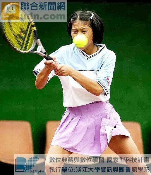 剛滿十四歲的謝淑薇昨天在全國網球第一次排名賽女單封后是繼王思婷後第二年輕的全國冠軍賽後謝爸爸說:「希望女兒的這個冠軍能夠換來一張報名表。」原來謝淑薇原本計畫本月十日自費赴日參加A級(最高級)的名古屋及第一級的福岡青少年網賽爭取較多的積分但全國網球協會至今無人出面辦理報名手續。圖為她在擊球的剎那形成球在面前的有趣畫面。 |